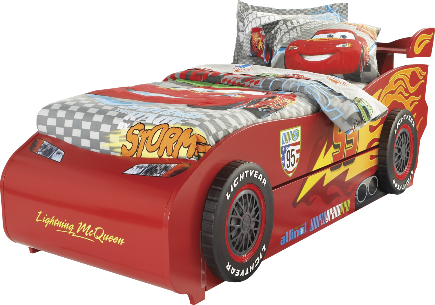 Disney Cars Lightning McQueen Red 6 Pc Twin Bed With Spoiler Very well made.