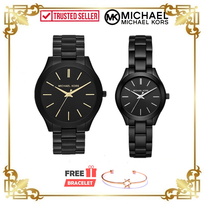 100 Original Michael Kors Slim Runway Black Dial Black Ion plated Unisex Watch Women Jam Tangan Wanita MK3221 MK3587 Very well made.