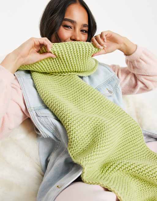 ASOS DESIGN knitted personalised scarf with E initial in green Very well made.