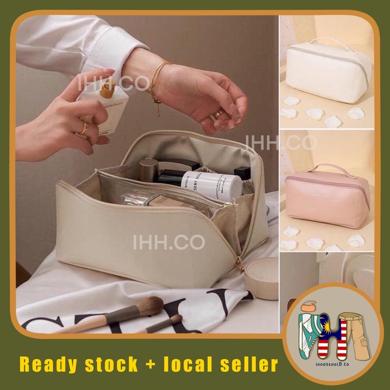 Cream Leather Makeup Bag Pillow Bag PU Cosmetic Bag Large Travel Bag Very well made.