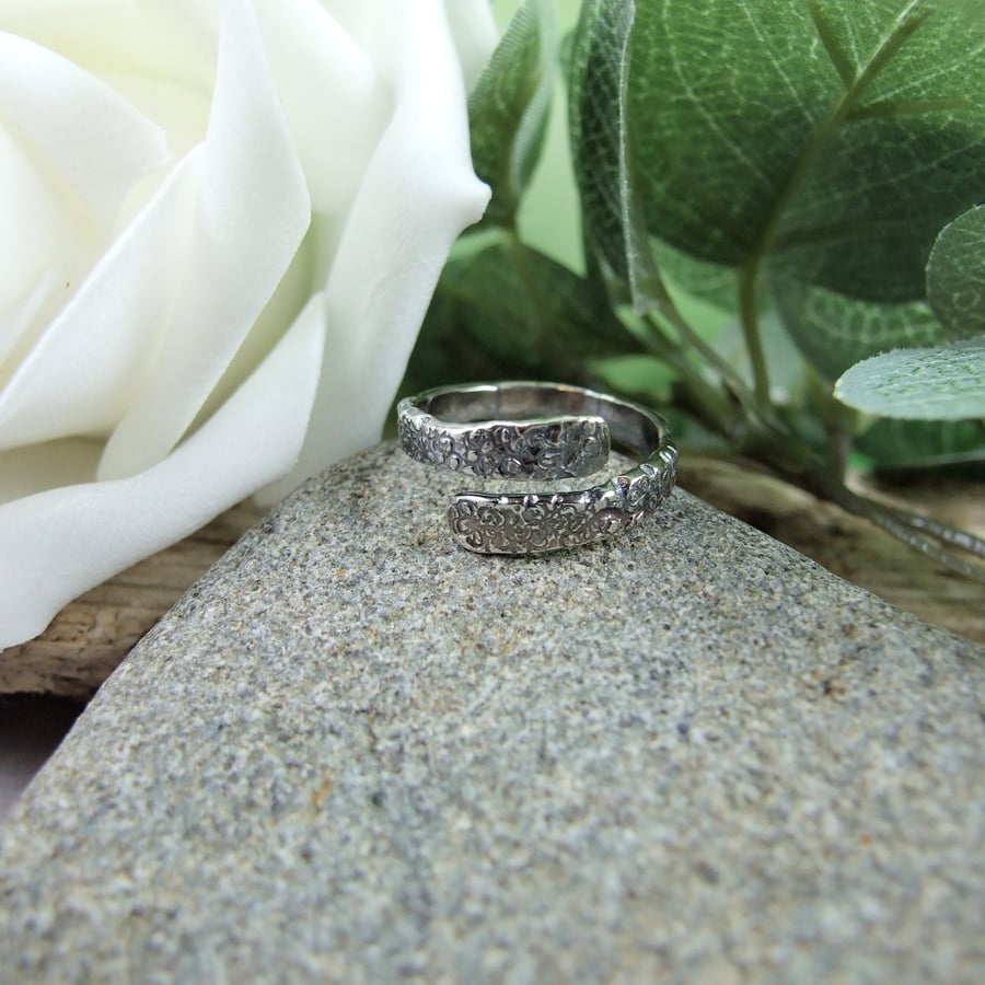 Sterling Silver Ring. Rustic Textured Overlap R Folksy Very well made.