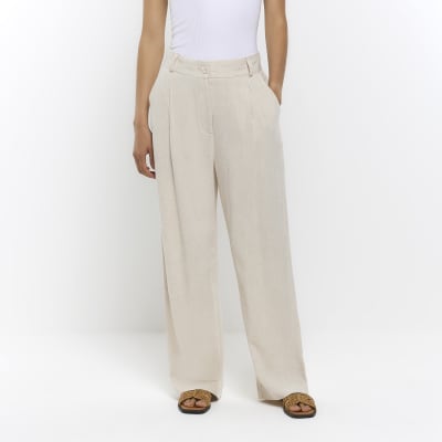 Beige wide leg trousers with linen River Island Very well made.