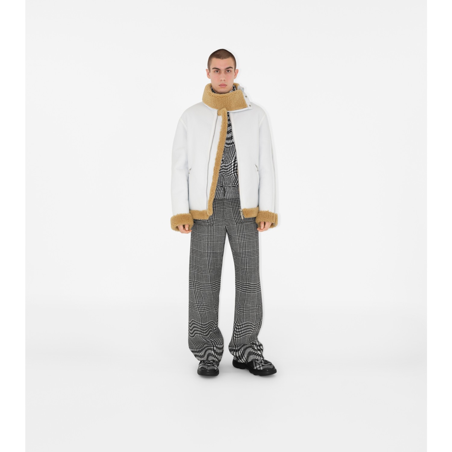 Shearling Aviator Jacket in White Men Leather Burberry Official Very well made.