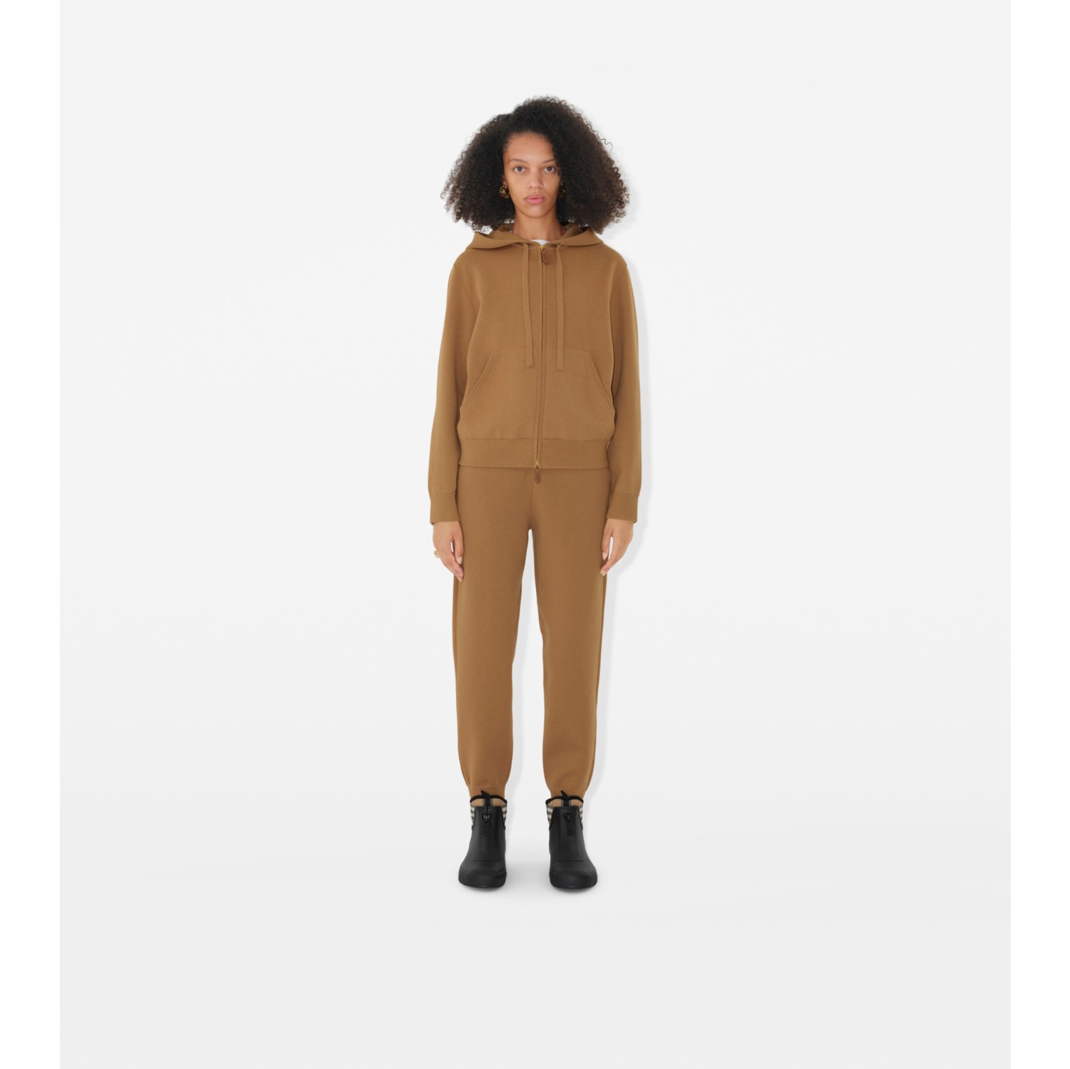 Cashmere Blend Zip Hoodie in Camel Women Burberry Official Very well made.