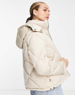 Calvin Klein diamond quilted padded hooded jacket in cream Very well made.