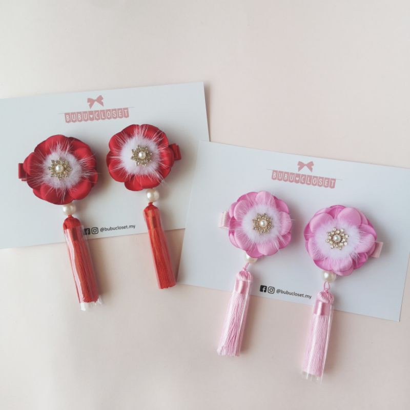 CNY Chinese Oriental Flower Pom Pom Qipao Baby Kid Hair Clips Set Very well made.