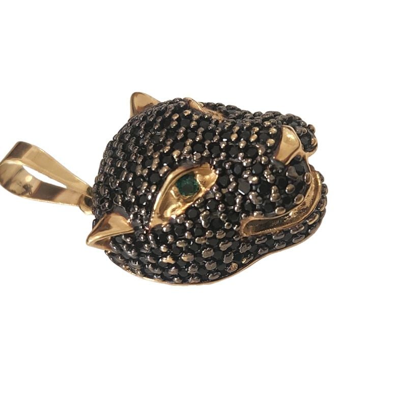 Pingente Cabe a de Pantera Ouro 18k Amarelo Zirconio Negro e Verde Nos Olhos.rosangela Lima Joias J ia Feminina Rosangela Lima Joias Nunca Usado Very well made.