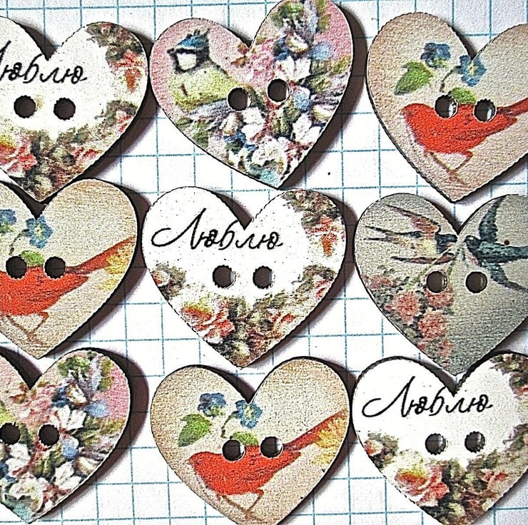 10 x Heart Shape Wood Bird and Flower Design B Folksy Very well made.