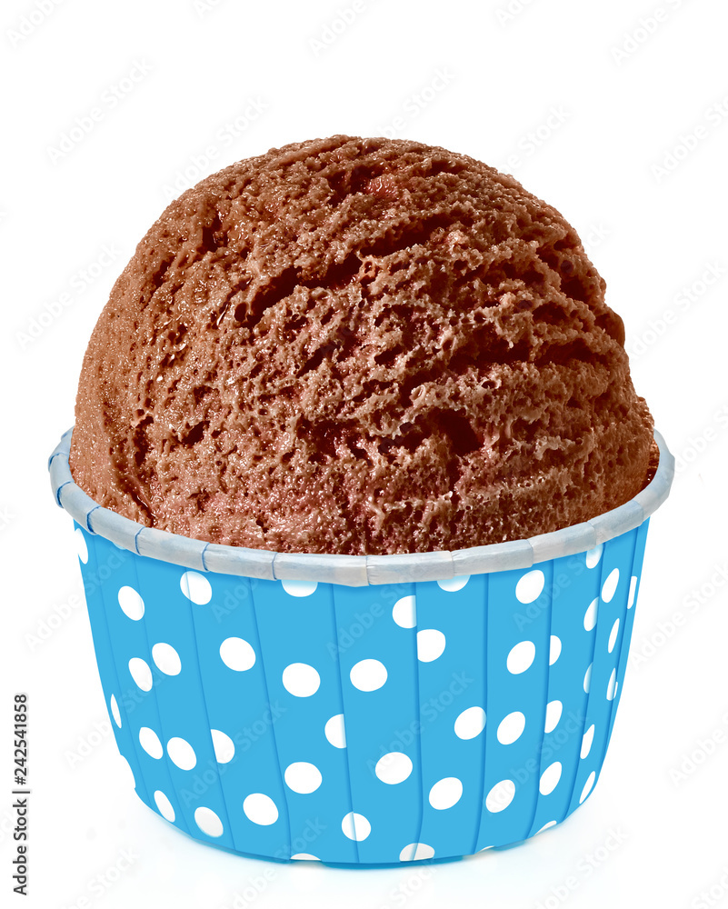 Chocolate ice cream scoop in paper cup isolated on white Very well made.