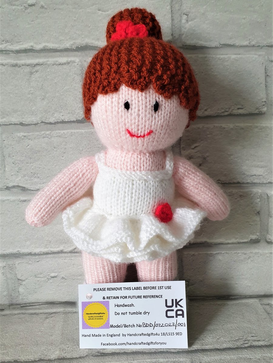 Knitted Ballet Dancer Doll UKCA tested soft toy Folksy Very well made.